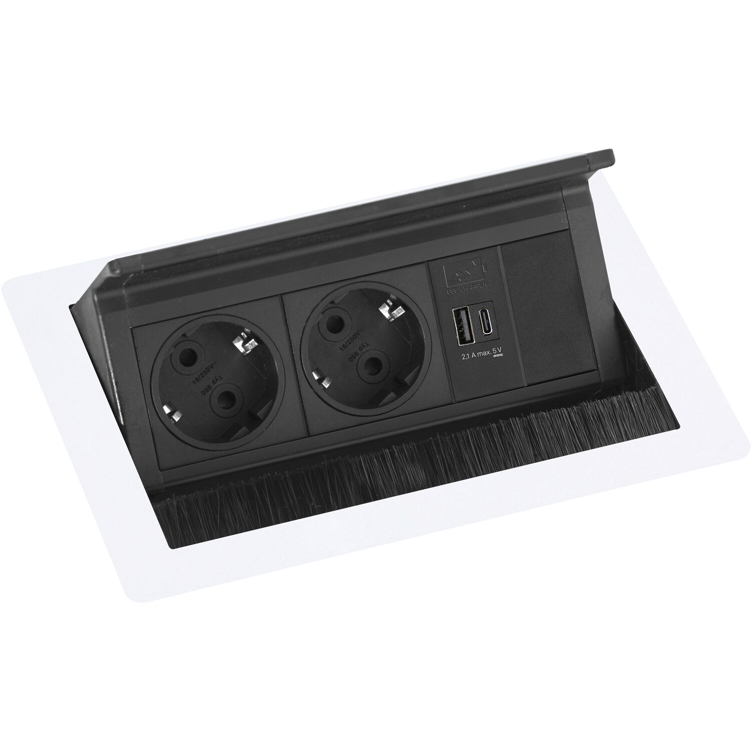 SCH EVOline FlipTop Push pistikupesa, 2xSchuko + USB-A- USB-C-, Valge