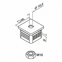 QRAIL Easy hit endcap square line, 40x40x2mm, flat, stainless steel AISI 304 satined